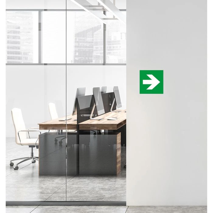Typ: Notausgang, Fluchtweg, Richtungspfeil