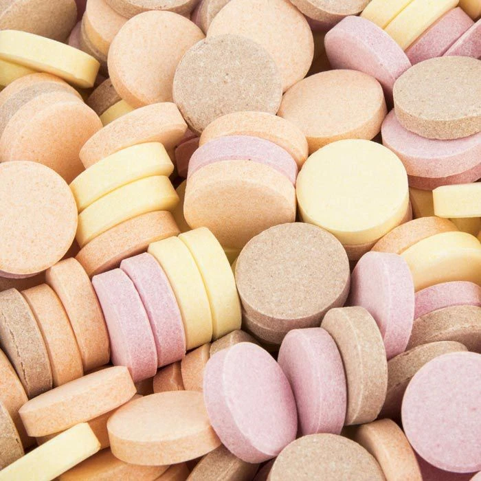 Zutaten: Zucker, Maltodextrin, Säuerungsmittel: L(+)- Weinsäure und Citronensäure, Säureregulator: Natriumhydrogencarbonat, pflanzliche Fette (Raps) ganz gehärtet, Glukosesirup, Stärke, Aromen, Trennmittel: Mono- und Diglyceride von Speisefettsäuren, Farbstoffe: Kurkumin, echtes Karmin und Paprikaextrakt, Saflorkonzentrat