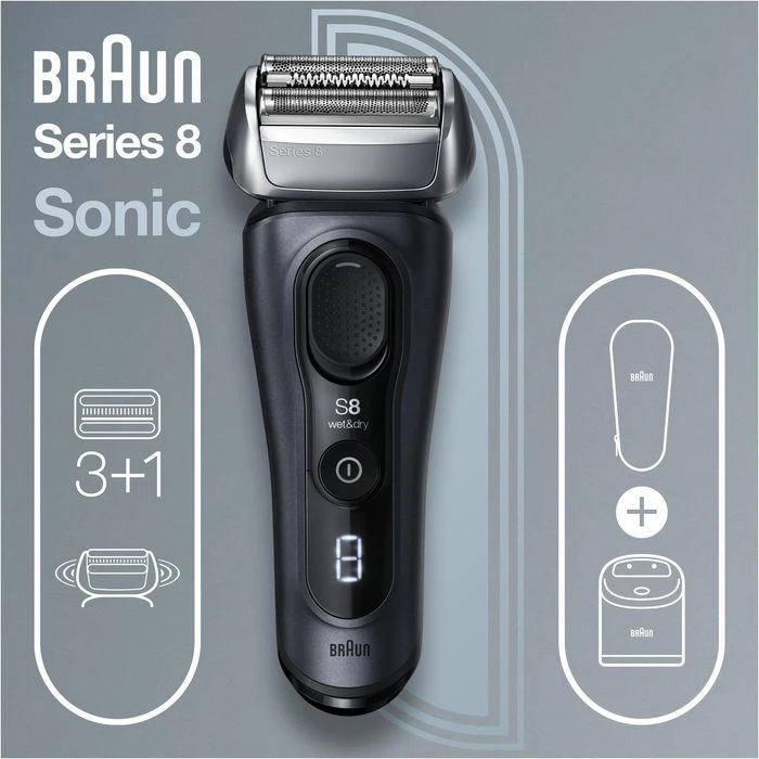 Braun Elektrorasierer Series 8 8463cc, Fjordgrau, Wet & Dry, 3+1 Scherkopf, 5-in-1 Reinigungsstation