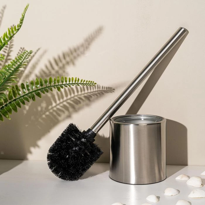 • Eleganter, rostfreier Edelstahlstiel mit wechselbarem, schwarzem Bürstenkopf