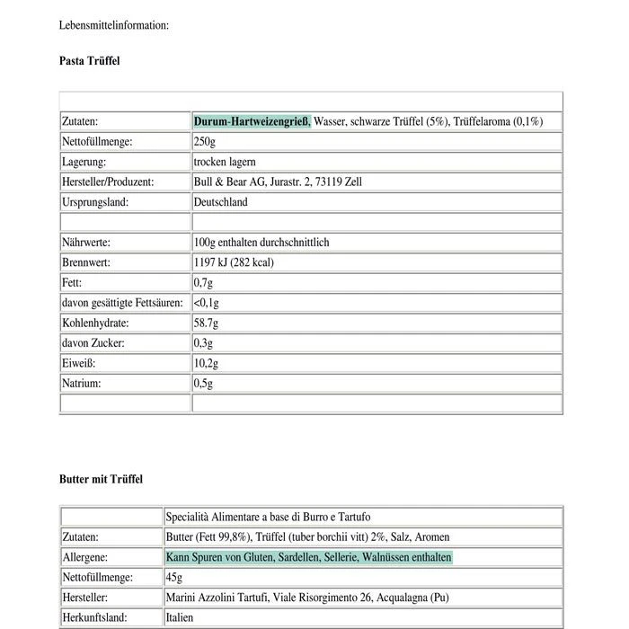 Detaillierte Produktinformationen, Zutaten, Allergiehinweise und Nährwertangaben befinden sich im angehängten Datenblatt.