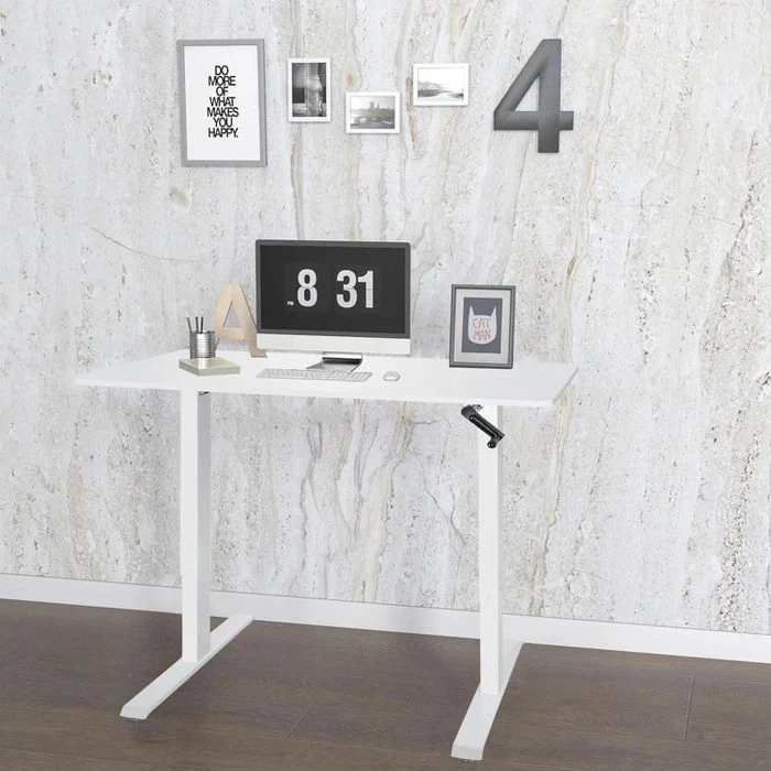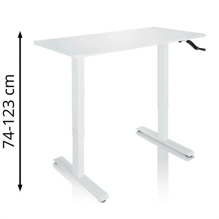 HJh-OFFICE Schreibtisch Stand CR, Weiß, Manuell Verstellbar Mit Kurbel 120 X 74-123 X 60cm