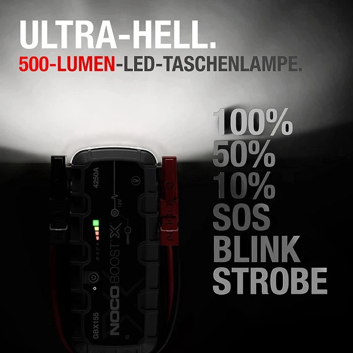 • Kompaktes, robustes und tragbares Lithium-Ionen-Starthilfegerät