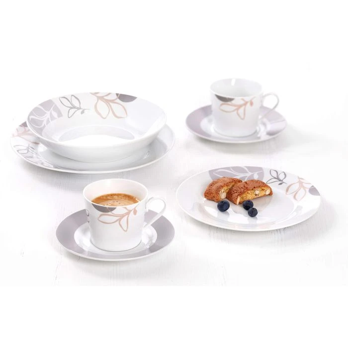 • Weiß mit Dekor in Grau- und Sandtönen